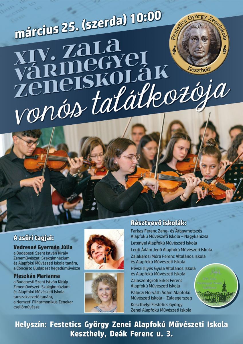 Hírek XIV. Zala Vármegyei Zeneiskolák Vonóstalálkozója - 2026.03.25. 2026. március 04., szerda @ 13:37 Megosztás